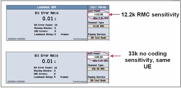 图5 测量BER的典型装置,结果基于12.2 kbps 和 33.6 kbps RMC